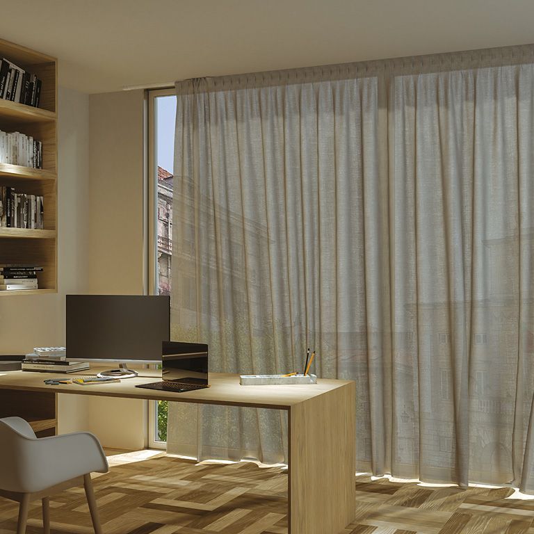 Nello specifico: tendoni, laterali, tendine a vetro, tende a pannello, tende a pacchetto, tende a onda, mantovane e drappeggi, tende tecniche, tende a rullo, plissè, verticali, veneziane per uffici, negozi, strutture industriali e commerciali.